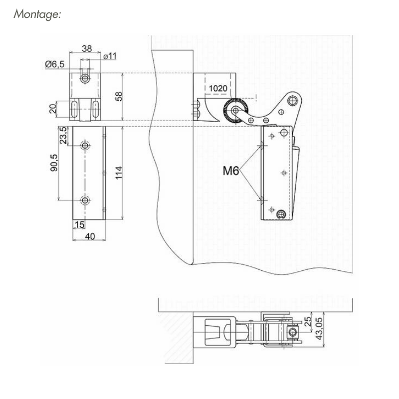 Der mechanische Timer wird i.d.R. in Öffnungsrichtigung mit Hilfe eines Montagewinkels seitlich an der Wand befestigt. Der Haken wird hinten am Türblatt montiert, so daß der Hebelarm des Timers beim Öffnen der Tür in den Haken einläuft und in geöffneter Position der Tür komplett hochgeklappt ist.