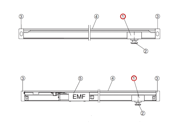 Gleitstück und Gleitstückschraube GSR-EMF, GSR-EMR für die Standflügel-Gleitschiene, Bandseite