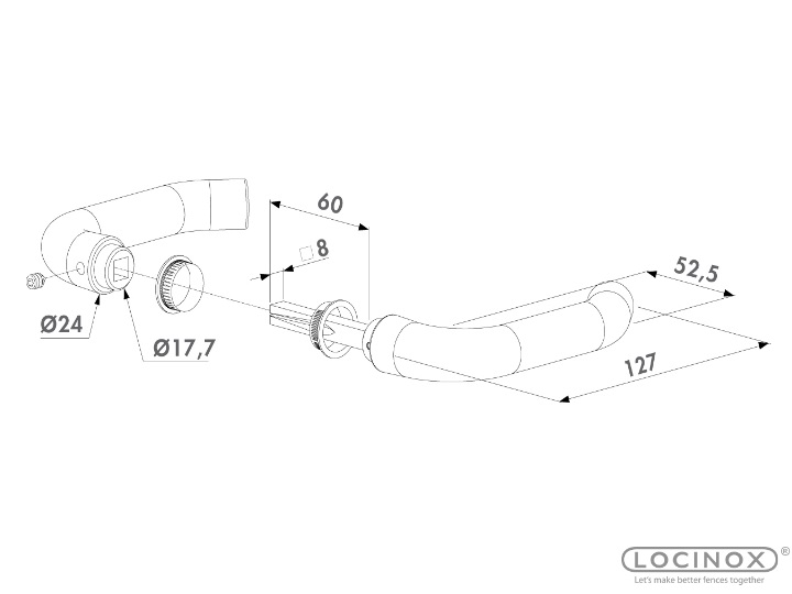 Drückerpaar von Locinox Drückerpaar aus anodisiertem Aluminium kurze Form Gewicht: 0,35 kg Drückerstift 8 mm Vierkant Lieferumfang:- 2 Stück Drücker- 8 mm Vierkantstift