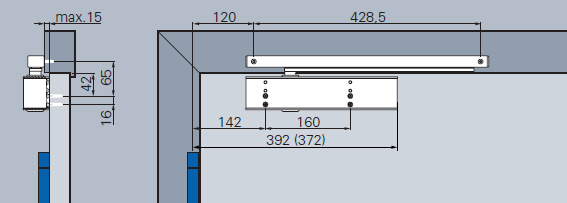 - ECOmount: Die Montageplatte nach EN 1154 wird vom Türschließer komplett abgedeckt.
