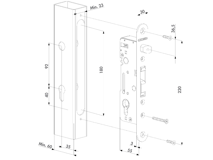 Einsteckschloss zum direkten Einbau in Metall- und Aluminiumtore