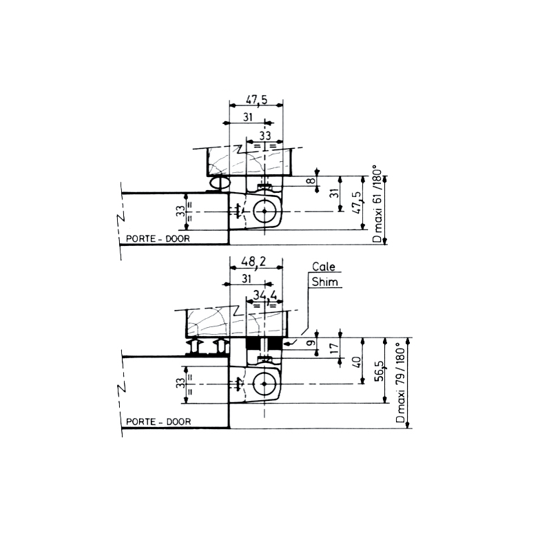 Scharnier für aufliegende Drehtüren - Fermod 481F oder 481HP