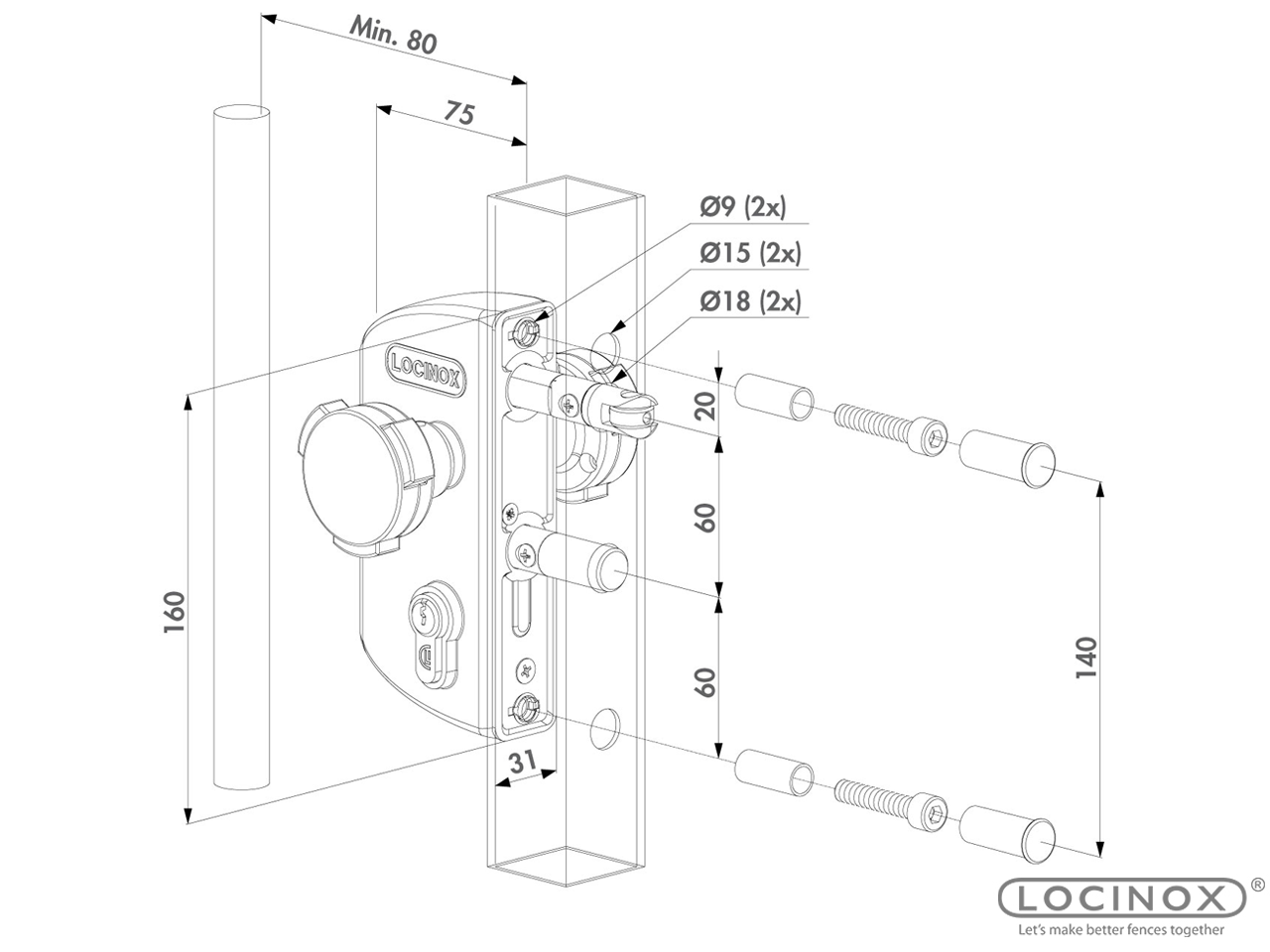 Das Locinox Torschloss LAKZ P1 WS für Schwimmbäder mit einem Edelstahl-Mechanismus und Polyamid-Gehäuse ausgestattet. Dieses Schloss wurde nach Schwimmbadnorm NF P90-306 entwickelt. Der einzigartige Rollriegel vereinfacht eine zügige Schliessung des Tores.