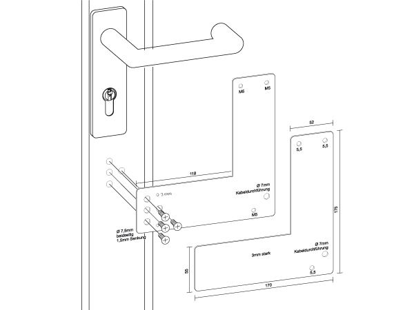 Produktinformationen "Montageplatte verlängert für Glasrahmen - GfS EH-Türwächter"