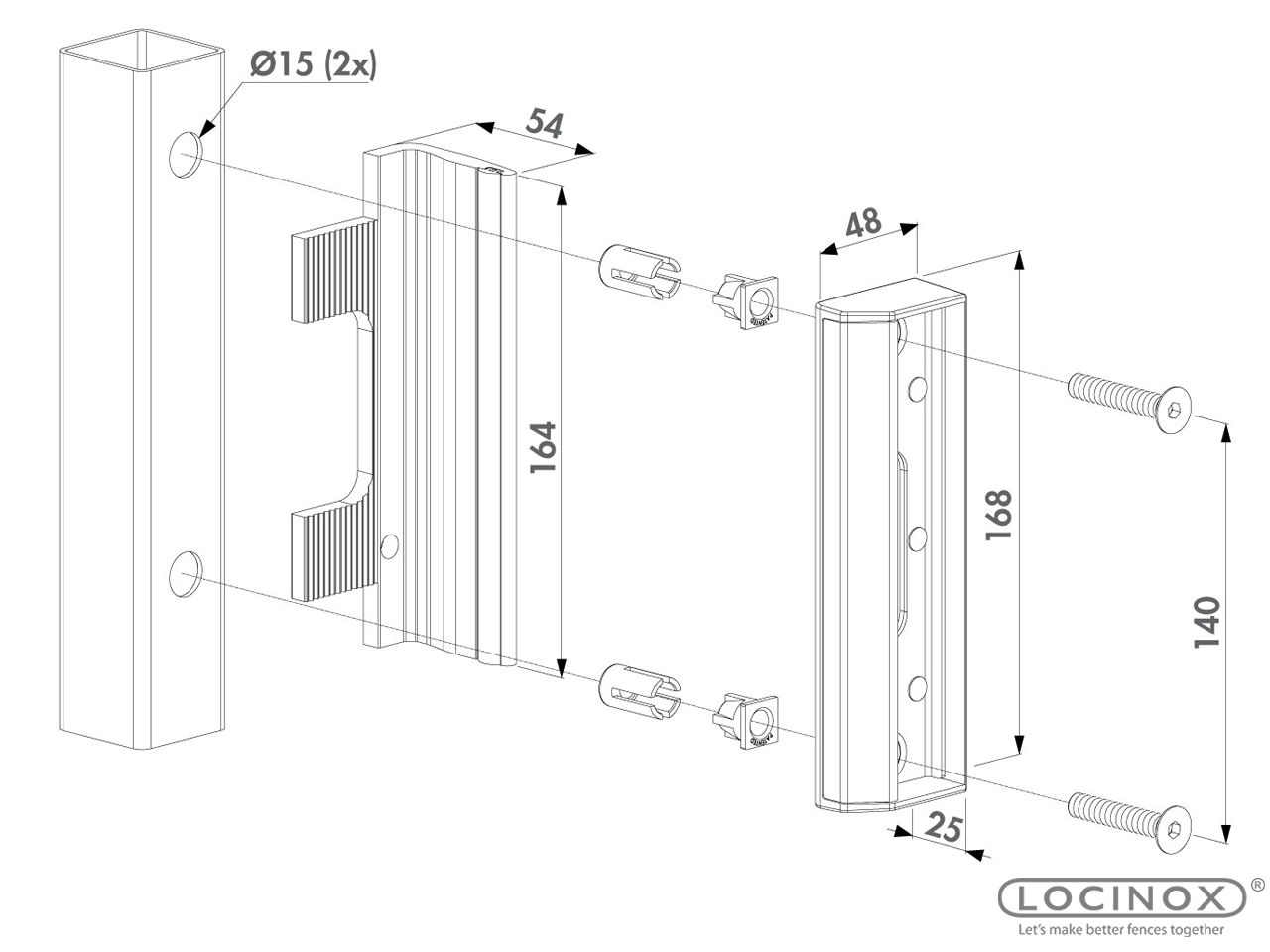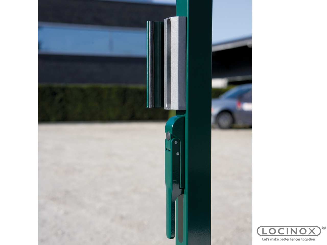 Doppelzylinderschloss LDKZ für Drehtore Industrieschloss mit Edelstahl-Mechanismus und zwei Schließzylindern Doppelzylinderschloss Locinox LDKZ mit Aluminium-Gehäuse und Edelstahl-Mechanismus. Bei Bedienung von einem der beiden Zylinder kann man das Schloss öffnen oder schließen, wodurch dieses Schloss eine gute Lösung für z.B. Feuerwehrzugang oder Müllabholung bietet. Eine 2-tourige Verriegelung des Nachtriegels aus massivem Edelstahl garantiert eine sichere Schließung. Elektrostatisch lackierter Schlosskasten widersteht 1000 St. Salzsprühnebeltest Für Vierkant-Torprofile Edelstahl-Mechanismus Drückerstift Vierkant 8 mm Tages- und Nachtriegel nicht verstellbar Einfache links/rechts Umstellung der Schließfalle 2-touriger Schließbolzen mit 23 mm Hub Wechselbedienung Falle ist um 180° drehbar Abstand zwischen Falle und Riegel = 60 mm 4-Loch Montage mit 2 Inbusschrauben Austauschbar gegen alle Locinox Schlösser Ausführungen: Artikelnr. Profilgröße Drücker 2 Profilzylinder Farbe LDKZ4040D1LZILVVSZVSZM 40 - 60 mm 3006M - Aluminium-Drückerpaar beide Zylinder verschiedenschließend silber LDKZ4040D1LZILVVSZVSZD 40 - 60 mm 3006D - Aluminium-Drückerpaar beide Zylinder verschiedenschließend silber LDKZ6060D1LZILVVSZVSZM 60 - 80 mm 3006M - Aluminium-Drückerpaar beide Zylinder verschiedenschließend silber LDKZ6060D1LZILVVSZVSZD 60 - 80 mm 3006D - Aluminium-Drückerpaar beide Zylinder verschiedenschließend silber LDKZ6060D1LZILVVSZVSZM 80 - 100 mm 3006M - Aluminium-Drückerpaar beide Zylinder verschiedenschließend silber LDKZ8080D1LZILVVSZVSZD 80 - 100 mm 3006D - Aluminium-Drückerpaar beide Zylinder verschiedenschließend silber Weitere Farben, Drückerpaare und Profilzylinder auf Anfrage. Lieferumfang:- Doppelzylinderschloss für Drehtore LDKZ - für Vierkantprofile- Drückerpaar (auswählbar)- beide Profilzylinder verschiedenschließend- je Profilzylinder 3 Schlüssel