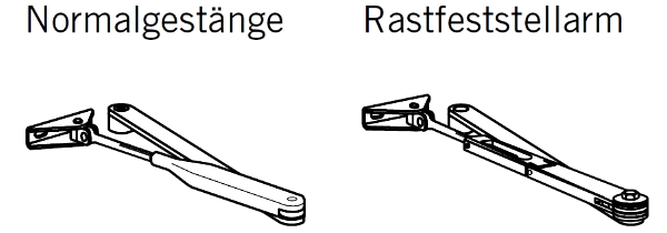 Die Türschließer-Version mit Normalgestänge oder mit Rastfeststellarm ohne Abschaltung kann rechts neben dem Bild ausgewählt werden.