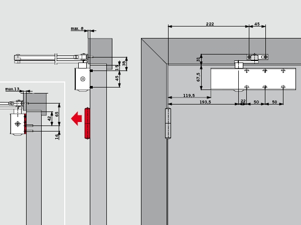 - bietet die Möglichkeit zur idividuellen Anpassung der Schließkraft an die jeweilige Türgröße stufenlos über eine Stellschraube.